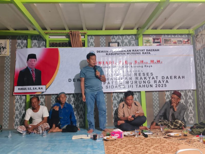 PURUK CAHU, tempotimur.com – Ketua Dewan Perwakilan Rakyat Daerah (DPRD) Kabupaten Murung Raya, Rumiadi, melaksanakan kegiatan reses di Desa Batu Karang, Kecamatan Laung Tuhup, pada Jumat (17/10/2025). Kehadiran orang nomor satu di lembaga legislatif Murung Raya itu disambut hangat oleh masyarakat, tokoh adat, dan tokoh agama setempat.