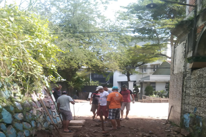 Aksi kerja bakti ini difokuskan untuk mengatasi masalah yang timbul di Gang Sukarela. Kegiatan yang dilakukan antara lain mencabuti tumbuhan liar, membersihkan saluran air, dan yang utama, menyamakan ketinggian jalan masuk gang.