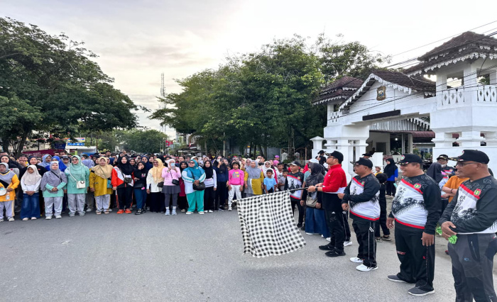 Tanjung Balai — Dalam rangka menyambut HUT PGRI Ke-80 dan Hari Guru Nasional Tahun 2025, Wakil Wali Kota Tanjung Balai, Muhammad Fadly Abdina didampingi Staf Ahli I TP-PKK Kota Tanjung Balai, Ny. dr Desi Fadly Abdina melepas para peserta Jalan Santai yang sebelumnya telah berkumpul di depan rumah dinas Wali Kota Tanjung Balai, Jalan Sudirman, Minggu (23/11/2025)