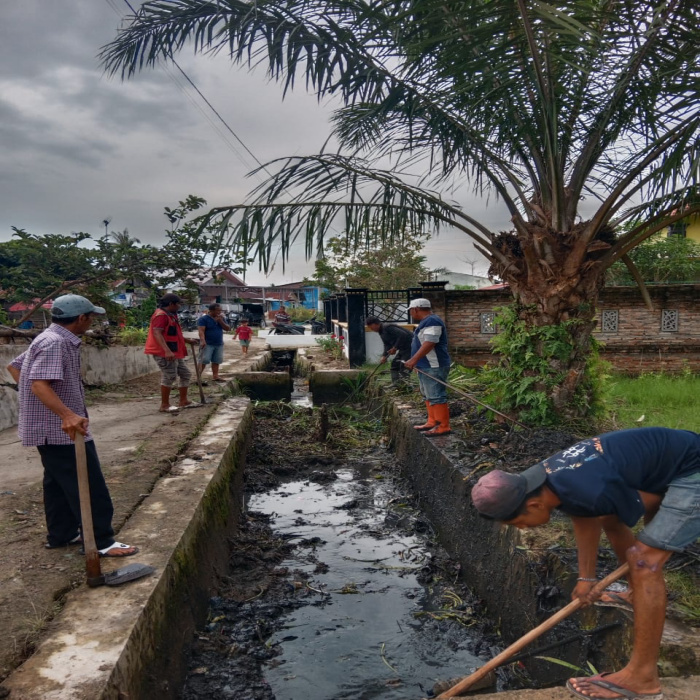 Kegiatan gotong royong berlangsung dengan tertib dan penuh kebersamaan, mencerminkan semangat kolaborasi antara pemerintah dan masyarakat dalam menjaga infrastruktur lingkungan demi kepentingan bersama.
