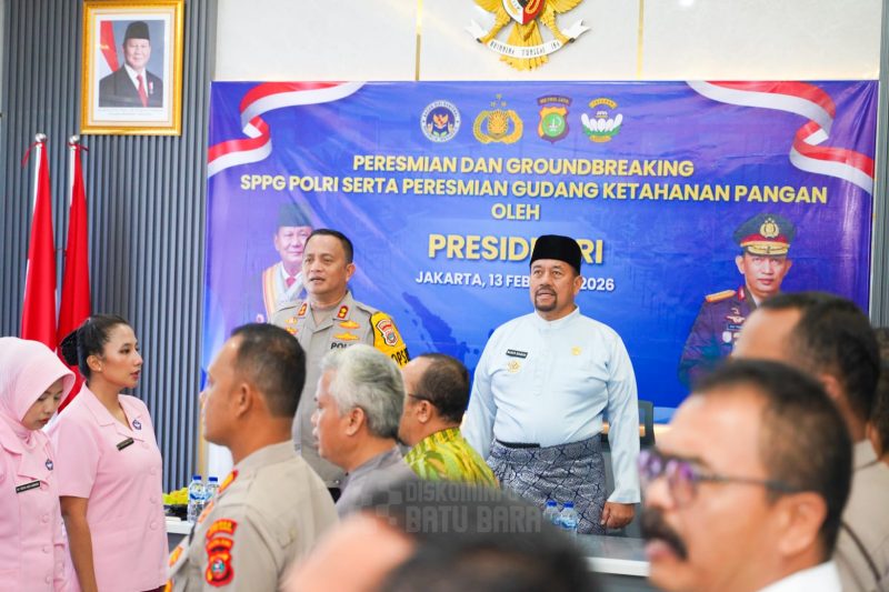 BATU BARA, Bupati Batu Bara H. Baharuddin Siagian, S.H., M.Si., mengikuti peresmian Satuan Pelayanan Pemenuhan Gizi (SPPG) secara serentak di seluruh Indonesia yang dipimpin langsung oleh Presiden Republik Indonesia Prabowo Subianto melalui Zoom Meeting di Aula Tantya Sudhirajati, Polres Batu Bara, Kecamatan Lima Puluh, Jumat (13/2/2026).