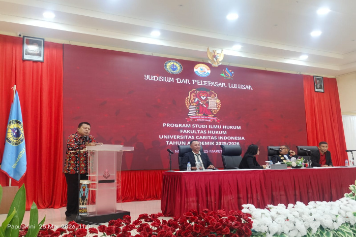 MANOKWARI — Universitas Caritas Indonesia (Uncri) mewisudakan 50 lulusan Program Studi Ilmu Hukum angkatan pertama dalam prosesi yudisium dan pelepasan Tahun Akademik 2025/2026 yang digelar di Manokwari, Rabu (25/3/2026).