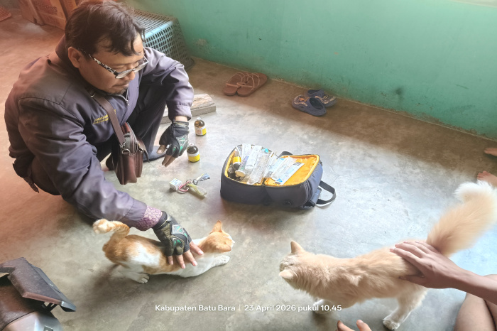 BATU BARA — Dinas Perikanan dan Peternakan (Disnakan) Kabupaten Batu Bara melalui Bidang Kesehatan Hewan dan Kesehatan Masyarakat Veteriner (Keswan-Kesmavet) melakukan penanganan terhadap 15 ekor kucing milik warga di Kelurahan Labuhan Ruku, Kecamatan Talawi, Kamis (23/4/2026).
