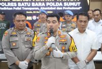 Batu Bara — Kapolres Batu Bara AKBP Taufiq Hidayat Thayeb, S.H.S.IK didampingi Waka Polres Kompol Imam Alriyuddin,SH.MH Kabagops Kompol Merytaken, Kasat Narkoba…