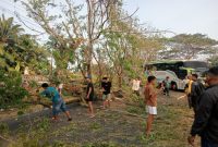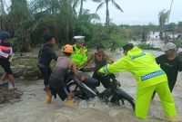 BATU BARA — Personel Satlantas Polres Batu Bara meninjau lokasi banjir dan pohon tumbang di Desa Nenas Siam, Kecamatan Medang Deras, Kabupaten…
