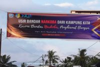 Baru Bara — Spanduk berlogo BNN dan Pemkab Batu Bara bertuliskan usir “Bandar Narkoba Dari Kampung Kita” terbentang di Jalan Rahmadsyah Desa Kampung…